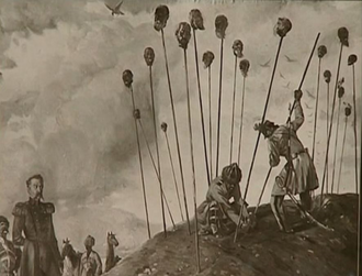 ![]() "Rus askerleri Çerkes kafalarını kazığa geçiriyor, Grigori Zass keyifle izliyor", Nikolay İvanoviç Lorer | |