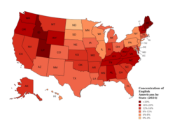 ![]() İngiliz soyundan gelenlerin eyaletlere göre oranı | |