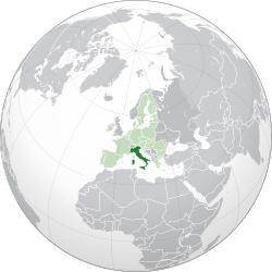 ![]() ![]() İtalya konumu (koyu yeşil) - Avrupa'da (açık yeşil & koyu gri) | |||||||||