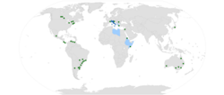 ![]() İtalyancanın dünyadaki dağılımı: Çoğunluk dili olduğu yerler Şu anda azınlık dili olduğu veya eskiden çoğunluk dili olduğu yerler İtalyanca konuşan toplulukların olduğu yerler | |