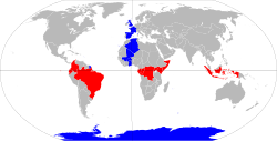 Ekvator üstünde bulunan ülkeler (kırmızı), baş meridyen üstünde bulunan ülkeler (mavi)