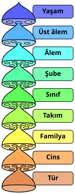 Biyolojik sınıflandırma hiyerarşisinin sekiz ana taksonu. Aradaki küçük sınıflandırmalar gösterilmemektedir.