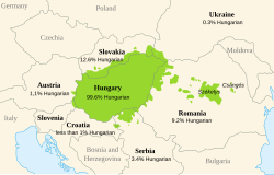 ![]() Macarca'nın konuşulduğu yerler. | |